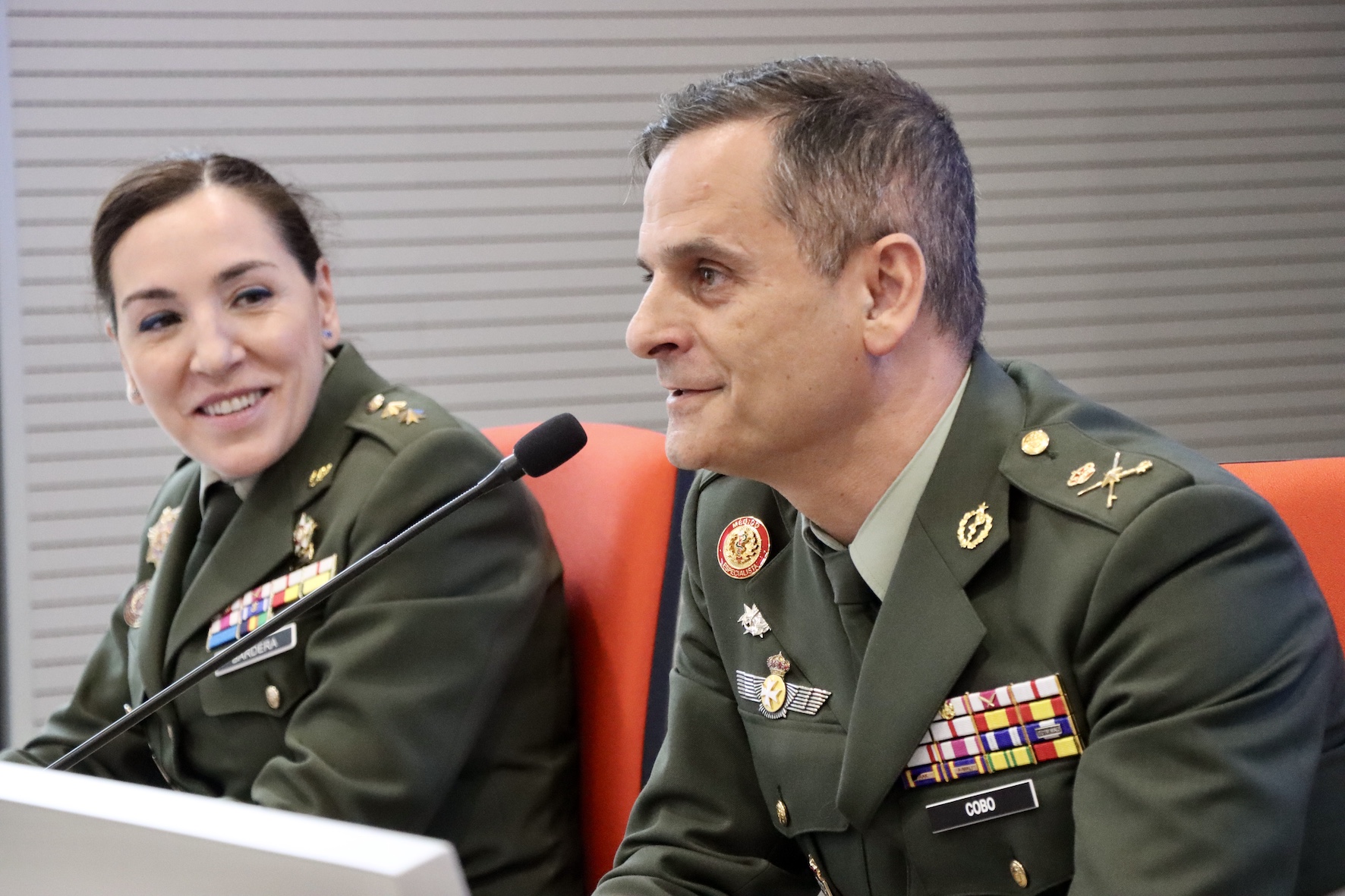 Acto seguido, Juan García se ha encargado de presentar a los intervinientes y de conducir la mesa redonda, en la que las dos figuras principales del CECOSS han sido muy didácticas con sus explicaciones. El general de Brigada Médico David Cobo ha explicado el origen, la estructura y la coordinación institucional del centro, mientras que la teniente coronel psicólogo Pilar Bardera ha dedicado su tiempo a detallar precisamente la intervención psicológica especializada y el enfoque psicosocial en el ámbito militar. También ha intervenido Isabel Martínez, cuya parte se ha titulado ‘Trabajo Social en el modelo CECOSS: acompañamiento, derechos y reintegración sociolaboral’. Juan García, por su parte, ha recordado la larga relación de la UAL y de la Facultad de Psicología con las Fuerzas Armadas, “en 2005 hicimos la primera visita a la Legión”, que pasa por ejemplo con la ejecución de un programa de prácticas curriculares.